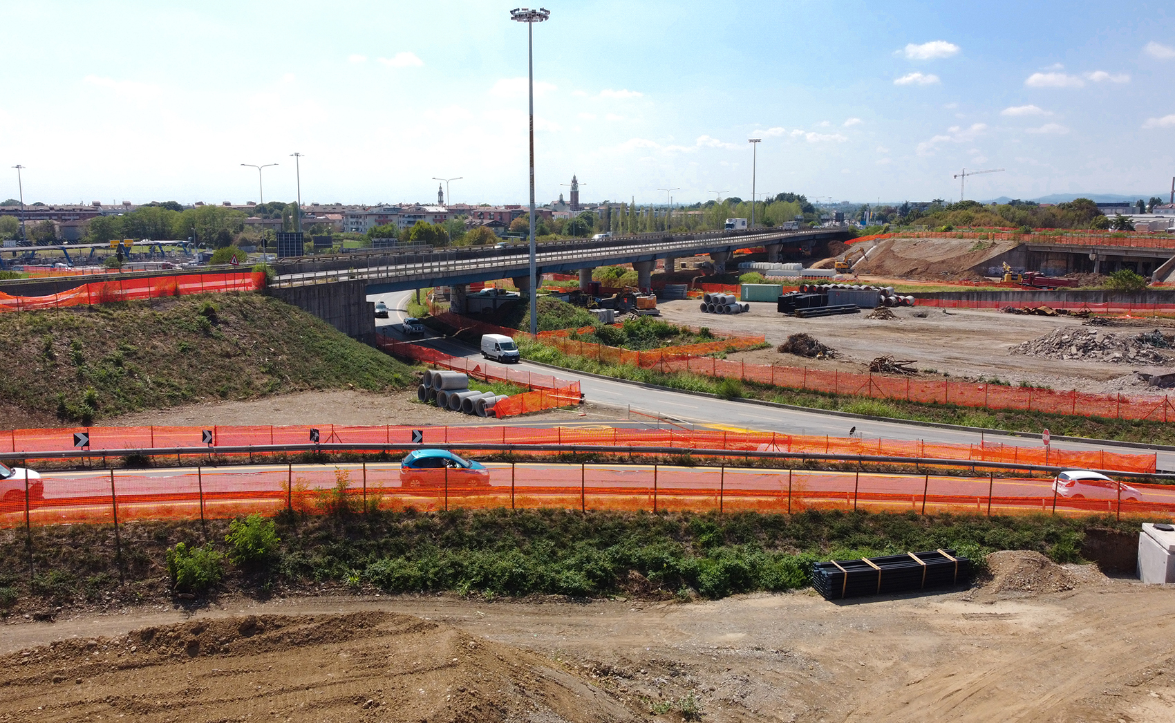Definizione dei nuovi margini stradali e costruzione degli elementi portanti nell’area sud autostradale.